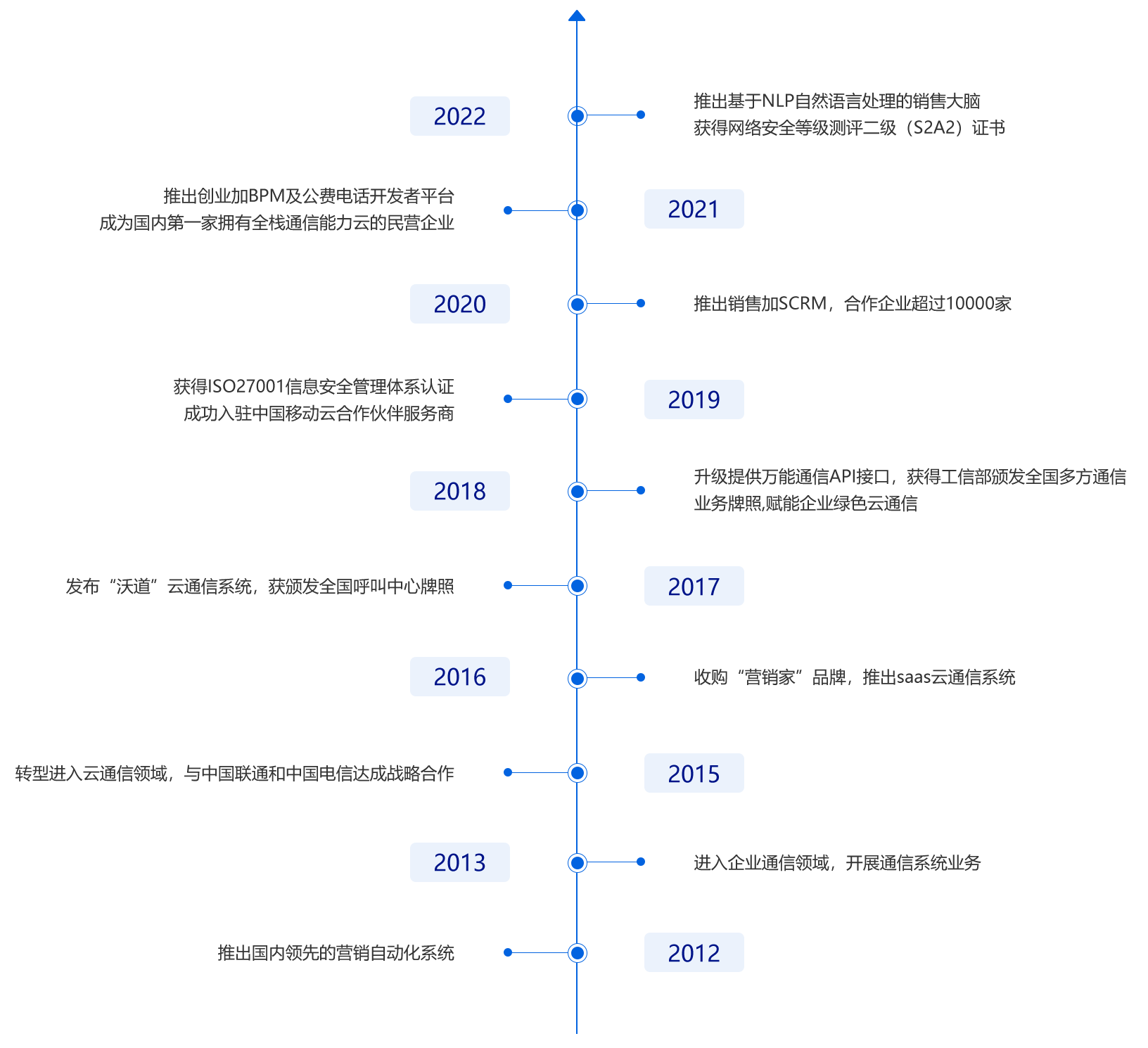 深耕行业多年,公司已成功发布“销售加SCRM”、“创业加BPM”、“公费电话开发者平台”等智能云通信产品。近年来,公司顺利与多所国内高校达成战略合作,