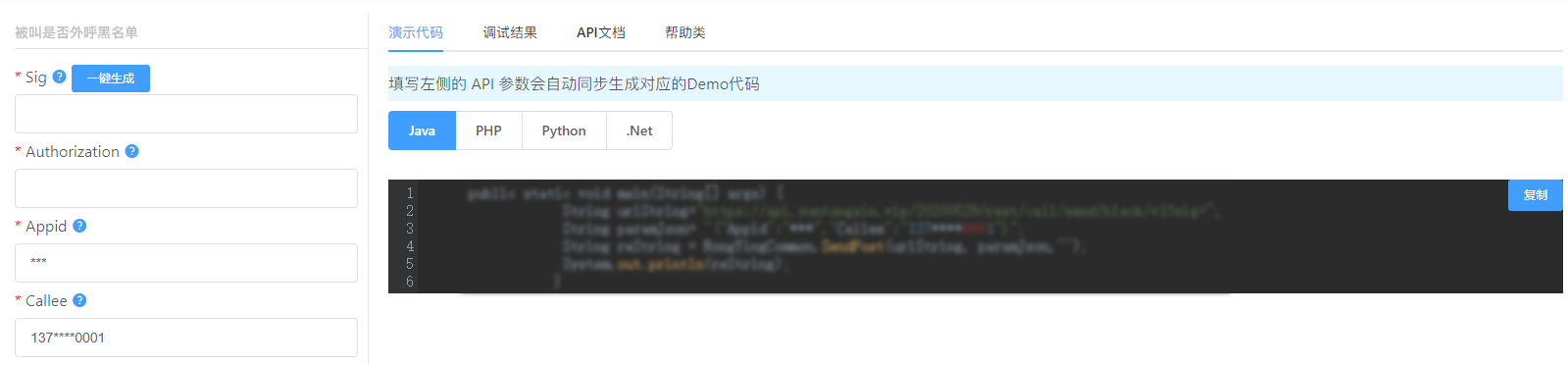 本接口主要用于验证外呼时该被叫号码是否会拦截,需要创建单独黑名单验证应用来使用。