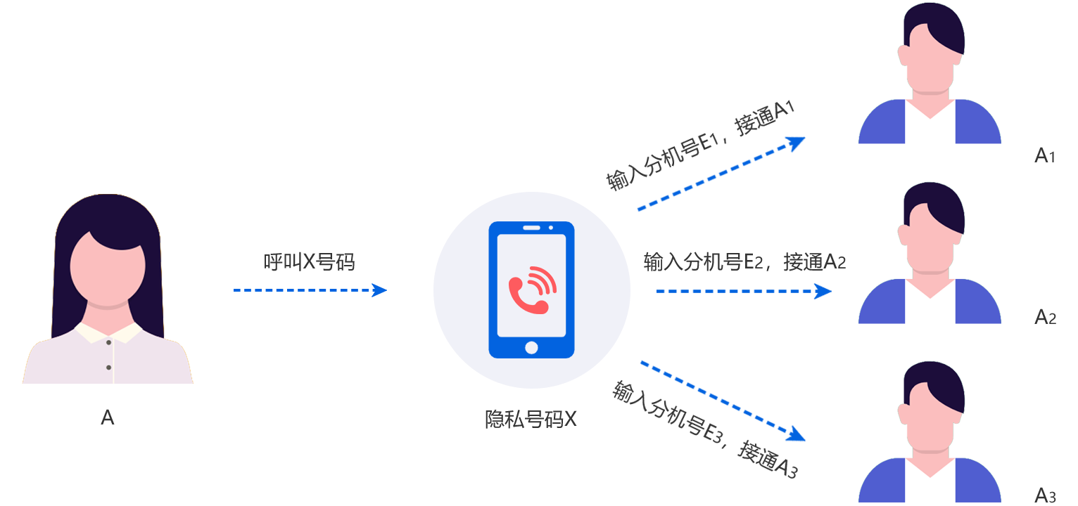 1个隐私号可设置1万个分机号,提高号码复用率,降低号码成本